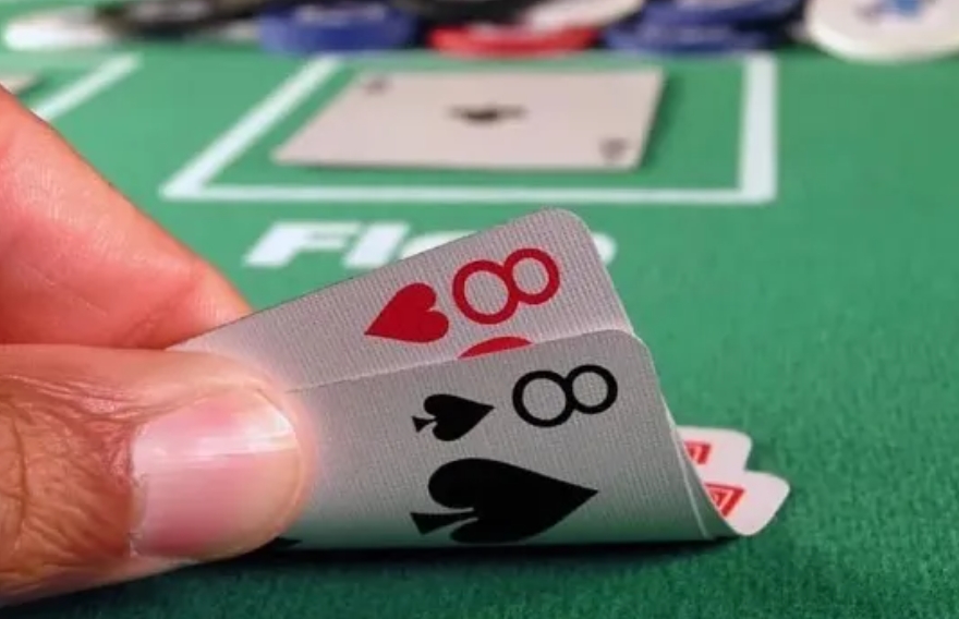 假设你在Q♣8♦6♣的牌面持有8♣8♥(中暗三)且有位置优势,对手c-bet。如果是单一加注底池,通常你应该倾向于加注。但在3-bet底池中,你应该倾向于跟注