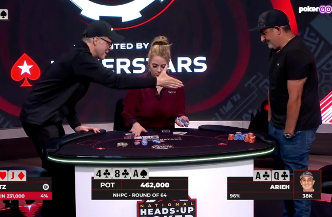 意识到自己极大概率要被淘汰,Katz 伸手越过桌面,想提前跟 Arieh 握手表示祝贺。但有着 30 年牌龄、见过无数次“一张入魂”惨剧的 Arieh 拒绝了握手,把手揣进了兜里。